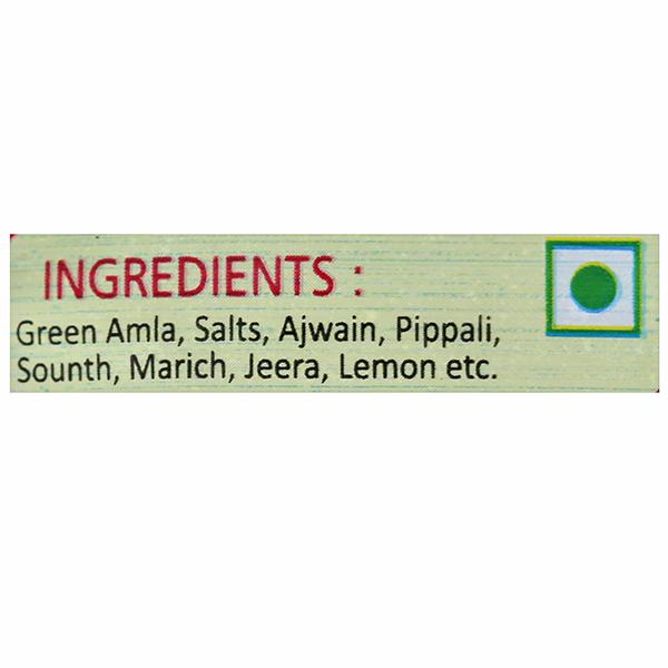 Green Amla, Salts, Ajwain, Pippali, Sounth, Marich, Jeera, lemon etc.