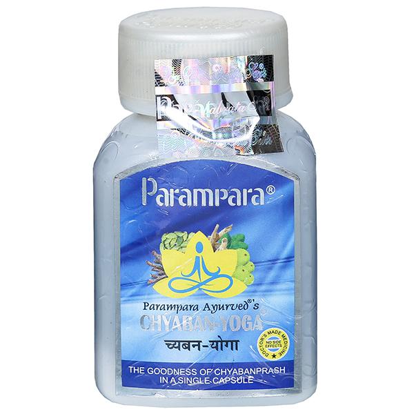 Parampara Chyaban Yoga capsules help with general weakness, morning sickness, fatigue, tension, stress, loss of energy, immune deficiency, cool & cough & control ageing process. 'Chyaban Yoga' contains all the selective goodness of Chyabanprash in a single capsule.