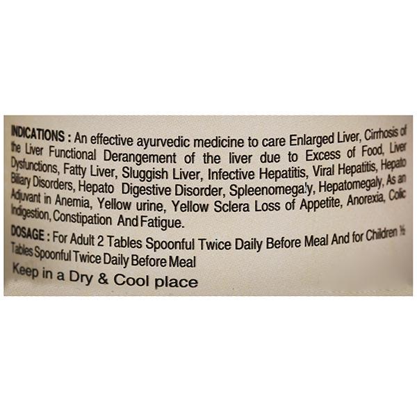 An effective Ayurvedic medicine to care Enlarged Liver, , Functional derangement of Liver due to excessive food, Liver dysfunction, Fatty Liver, Sluggish Liver, , Hepatobilliary Disorder, ,Digestive Disorder, Splenomegaly, Hepatomegaly, .As an adjuvant in Anaemia, Yellow urine, Yellow Sclera, Loss of Appetite, Anorexia, Chronic Indigestion, Constipation & Fatigue.
