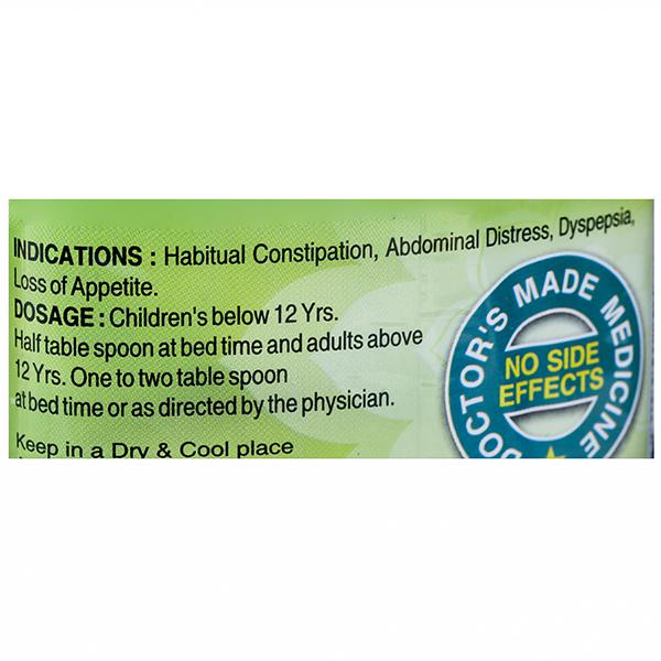 Dosage Information -For children below 12 years half tablespoons at bedtime & adults above 12 years one to two tablespoons at bedtime or as directed by the physician.