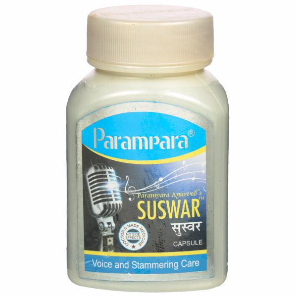 Parampara Suswar capsule is an Ayurvedic product. It helps to increase the perfection of voice, voice disorder, Hoarseness of voice, singer's cough & also helps in stammering.