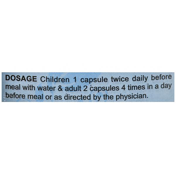 For children 1 capsule twice daily before meals with water & adult 2 capsules 4 times a day before meals or as directed by the physician.