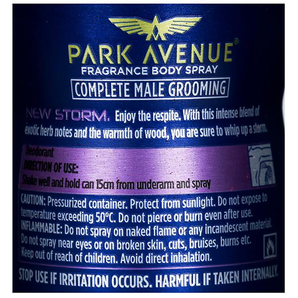 A busy schedule is no excuse for you to go about town looking and smelling like a mess. Besides, why do so when Park Avenue gives you a temptingly good reason to maintain a good hygiene, with this Storm Classic deodorant spray for men in a super-saver mega pack.
