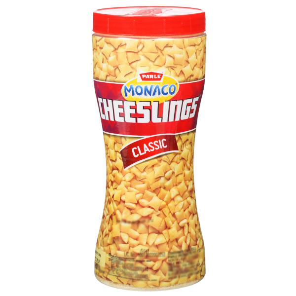 Parle Monaco Cheeselings Classic are light, crispy biscuits with a rich flavour of cheese. These tiny square shaped wafers sprinkled with salt are perfect to twist your ordinary boring moments. The pleasing taste of cheese and salt make these munchies favourite of all.
