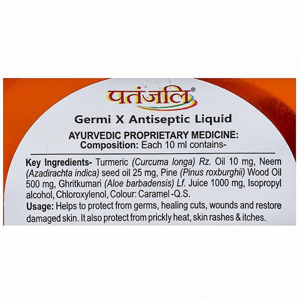 Patanjali GermiX Antiseptic Liquid gives you protection against germs. It gently cleanses and cools your skin that not only leaves you feeling healthy and refreshed but also nourish and moisturize your skin. It also help to protect you from prickly heat, skin rashes and itches. A perfect solution for complete hygiene of your family.