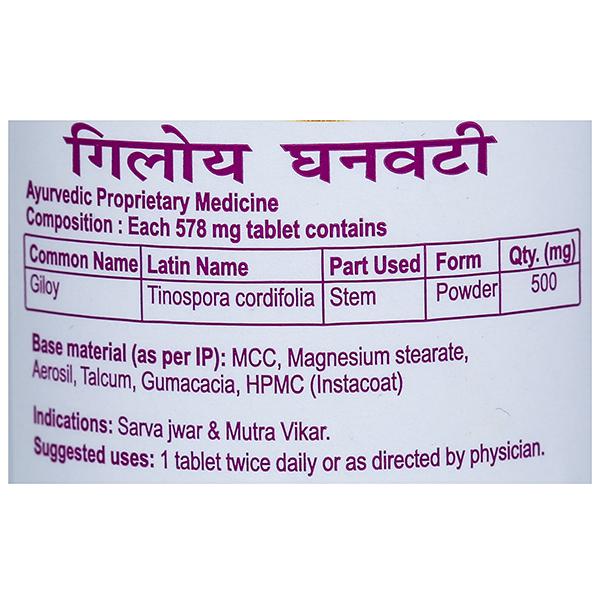 Product Information - The common name being Thippatheega, Vati Giloy Ghan is used as a treatment for general fever and immunity.Useful in generalized debility, fever, skin & urinary disorders. Beneficial in general weakness, fever, Dengue, Chicken Guinea, skin and urinary disorders. Generally, all vatis can be taken 1-1 or 2-2 in the morning and evening according to the various diseases, with lukewarm water, milk or with various supporting items.