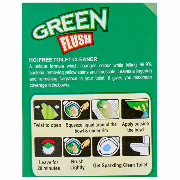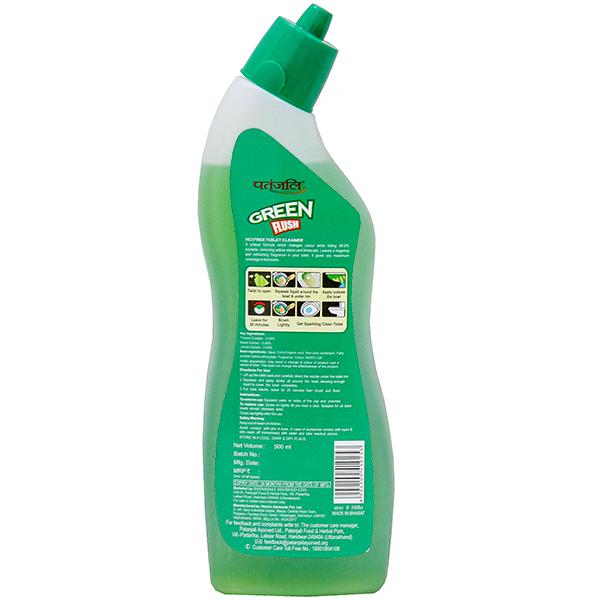Product Information - Patanjali Green Flush toilet cleaner is a unique formula which changes colour while killing 99.9% bacteria, removing yellow stains and limescale. it gives you maximum coverage in the bowls