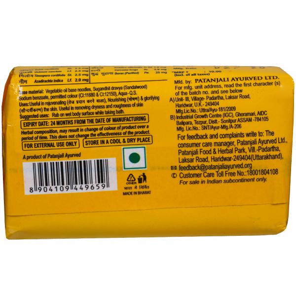 Patanjali Haldi Chandan Kanti Body Cleanser(Soap) enhances the natural beauty and glow of the skin. It protects skin, making the body healthy, pure and clean.