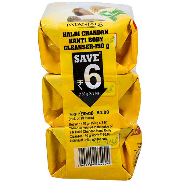 Product Information - Patanjali Haldi Chandan Kanti Body Cleanser (Soap) to have all the good properties of turmeric, sandalwood and other herbals and have a glowing skin. Excellent healthy products for the protection of body,skin and hair. The beauty products are not only to look good but a strong medium to protect skin, making the body healthy, pure and clean.