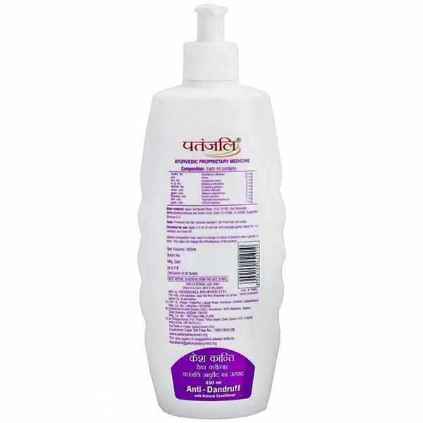 Product Information - Patanjali Kesh Kanti Anti Dandruff Hair Cleanser provides safety for your hair and scalp by reducing the chances for dandruff development. Dry, rough, dandruff-ridden scalp and hair need the gentle touch of herbs to soothe and revitalize the affected areas. Bhringraj, myrtle (mehendi), shikakai, amla strengthen the hairs while reetha, neem, tagar, bakuchi and turmeric work as a disinfectant and provide a cleansing and insecticide effect, right down to the root of the hair itself. Aloe vera, amla and kesh kanti reduce hair loss and greying and keep the crown lustrous. Use as often required to reduce the damaging effects of dandruff.