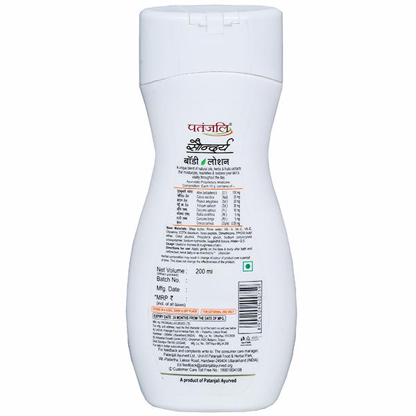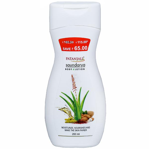 Patanjali Saundarya Body Lotion is a unique blend of natural oils, herbs and fruit extracts that moisturize, nourishes and restores skin's vitality throughout the day. It nourishes the skin deeply and prevents from skin aggression. It gets absorbed in the skin like magic and smells amazing.