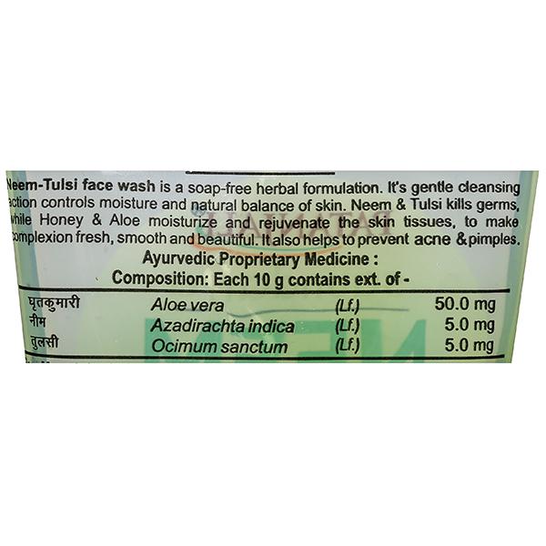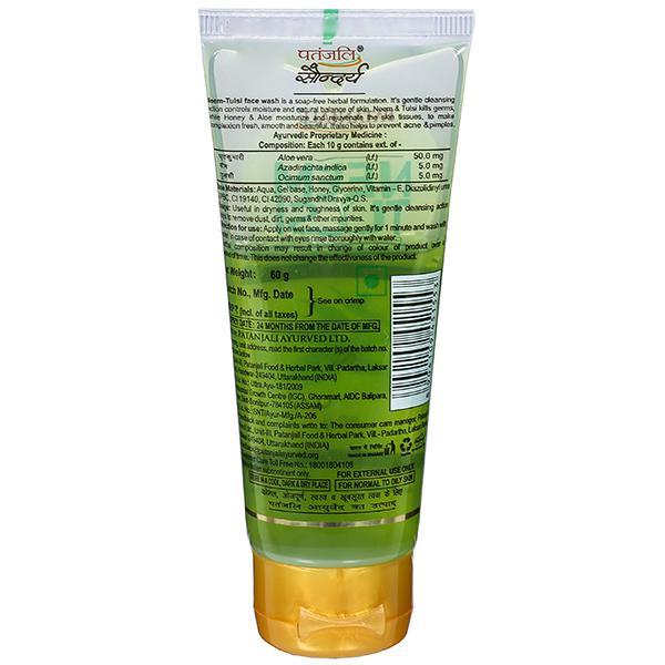 Product Information- Patanjali Saundarya Neem-Tulsi Face Wash is a soap-free herbal formulation. It's gentle cleansing action helps to control moisture & natural balance of skin. Neem & Tulsi kills germs, while Honey & Aloevera moisturize provides smooth & beautiful skinKey Benefits-