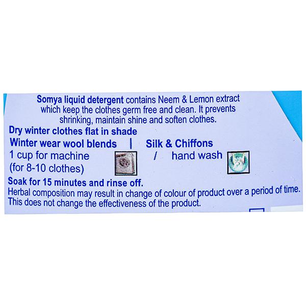 Product Information - Patanjali Somya Liquid Detergent, a herbal formulation specially made from lemon and neem to take care of your delicate clothes. The antibacterial liquid cleanses and brightens clothes while also keeping them germ-free. Its powerful stain-busting ingredients go after tough spots and stubborn dirt, and erases them from the fabric while keeping your hands soft. The citrusy fragrance leaves clothes smelling lemony so that you feel fresh for long. You will love the way your clothes smell.