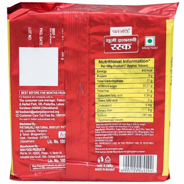 Patanjali Suji Elaichi Rusk Is Classic;Crispy & Delicious. Take A Well-Deserved Break With Patanjali Suji Elaichi Rusk.