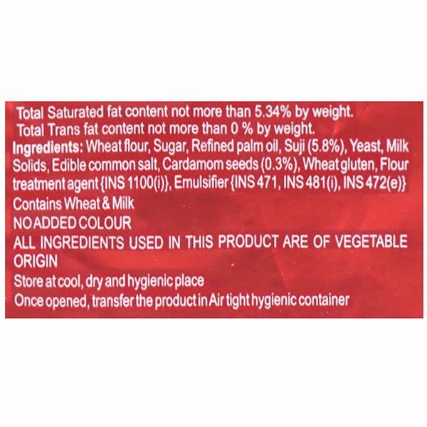 Wheat flour;Sugar;Whole wheat atta;Refined palm oil;Suji;Yeast;Milk Solids;Wheat gluten;Wheat bran;Edible common salt;Flour treatment agent