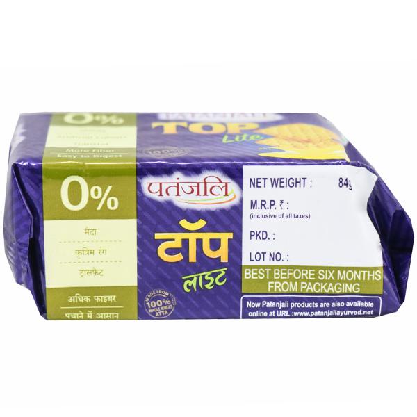 Patanjali top lite biscuits are made from 100 percent whole wheat atta and zero percent maida and transfat. Savour the taste and enjoy anytime.