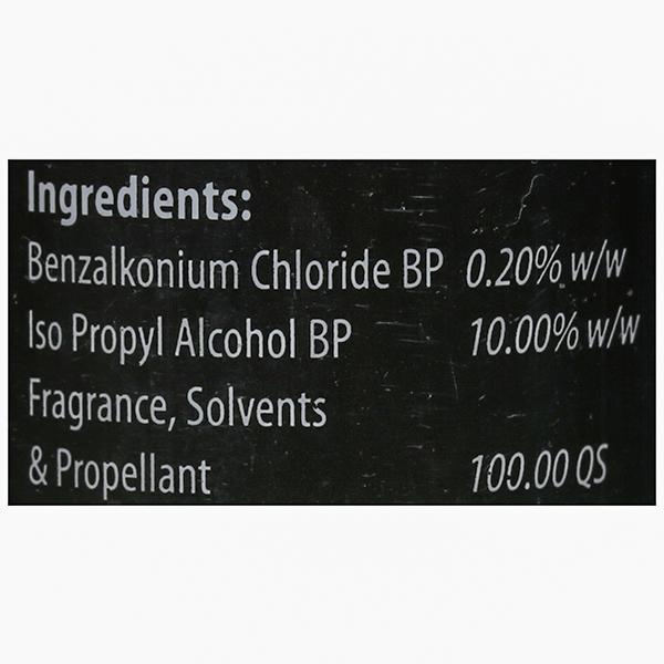 Ingredients-Benzalkonium Chloride, Isopropyl Alcohol, Fragrance, Solvents & Propellants q.s.