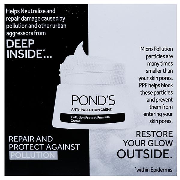 Most people believe that pollution damage is limited to dirt accumulation on the face. This can be taken care of with the use of facewash. Pollution particles are 20 times smaller than the pores of the skin causing the particles to get deep into the layers of the skin and cause damages like dark spots, uneven tone and darkening of skin. The Ponds Institute brings to you its breakthrough solution to fight all the problems caused by pollution Ponds Anti-pollution helps protect your skin far from Pollution damage far more than regular fairness or moisturising creams. Its formulation also helps repair damage previously cause by pollution micro particles to restore your impeccable skin glow. This light-weighted, beautifully scented, 2 in 1 pollution protection and glow restore formula is the perfect partner to walk out of your home with confidence without fearing the problems caused by pollution. Best used after cleansing skin, perfect to apply before make-up. Must use on all skin that will be exposed to pollution 15 20 minutes before exposure. Can re-apply as and when required This product is brought to you by The Ponds Institute Since 1846, Ponds scientists have been creating products that strengthen skin from deep inside to make it look soft and smooth from the outside. At The Ponds Institute, the journey of skincare innovation continues to create clinically proven products that make you look beautiful today and day after day.