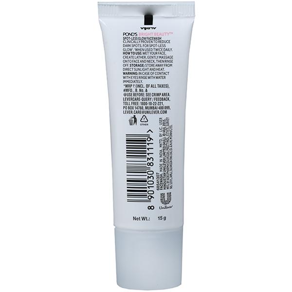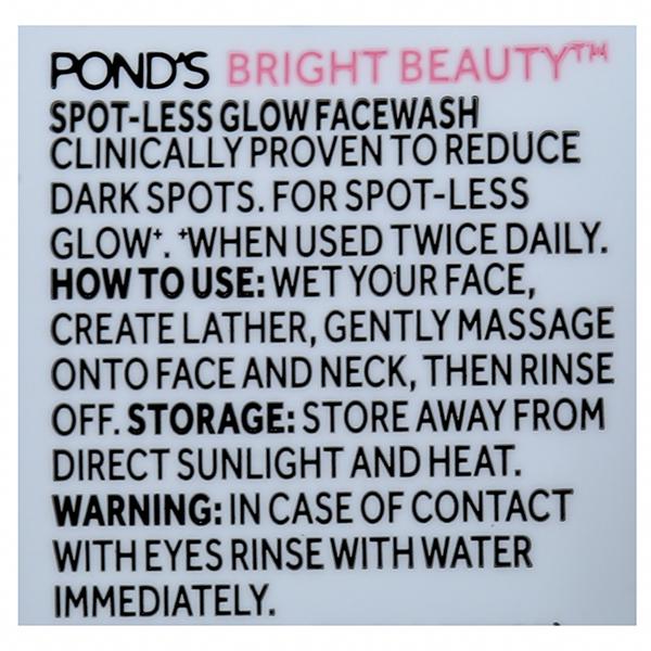 Is your true brightness lost or hidden? Over time dead skin cells accumulate on your skin, hiding your true brightness, and making you look dull. Introducing new and improved Pond's White Beauty Spotless Fairness Face Wash. 1st ever facewash with Double Brightening Action to renew your maximum brightness every day. Infused with vitamin B3+, it removes layers of brightness-blocking dead skin cells and it strengthens skin's natural renewal process, revealing new bright cells. Renew your maximum brightness with everyday wash. Clinically proven to give you brightness from the first wash. Its wipes out dead skin cells so that you can say goodbye to skin dullness. This helps bring out the brightness locked inside which shows clearly after every use of Ponds White Beauty Facewash. This is truly your solution to spotless and bright skin. Pond's White Beauty Face Wash also helps wash away germs.