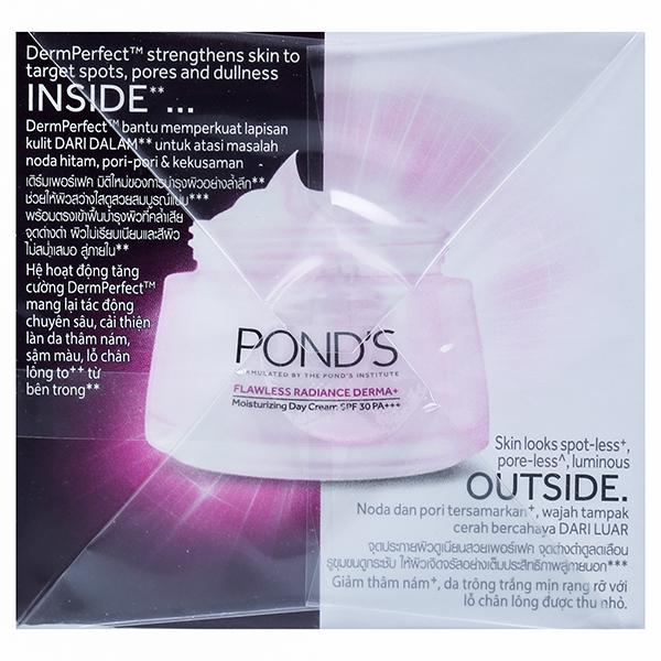 New Pond's flawless radiance derma+ moisturizing day cream SPF 30 pa+++ is inspired by derma treatments for a luminous skin. It deeply moisturizes and corrects skin imperfections. It is meant with high sun protection of SPF 30 pa+++ to shield skin from UV damage. it's clinically proven to spice up skin's cellular energy. Featuring Pond's most advanced technology up to now, complex, flawless radiance derma+ sets the gold standard for skincare, clinically proven to lighten spots. It works with the skin’s natural processes using doctor-formulated ingredients to re-energize skin cells without causing any damage.