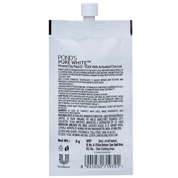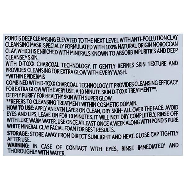 Apply an even layered on clean, dry skin - all over the face. Avoid eyes and lips. Leave on for 10 mins. It will not dry completely. Rinse off with luke warm water. Use once atleast once a week along with pond's pure white mineral clay foam for best results
