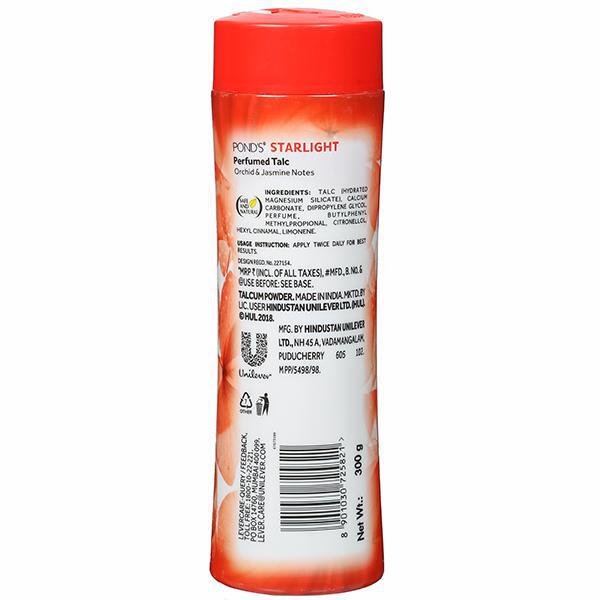 Ponds Star Light Perfumed Talc has the power to make you feel - fresh, bright, sensual, & happy.It is specifically designed for your skin - with soft & smooth micro talc that helps absorb sweat while emitting perfume like fragrance throughout the day.