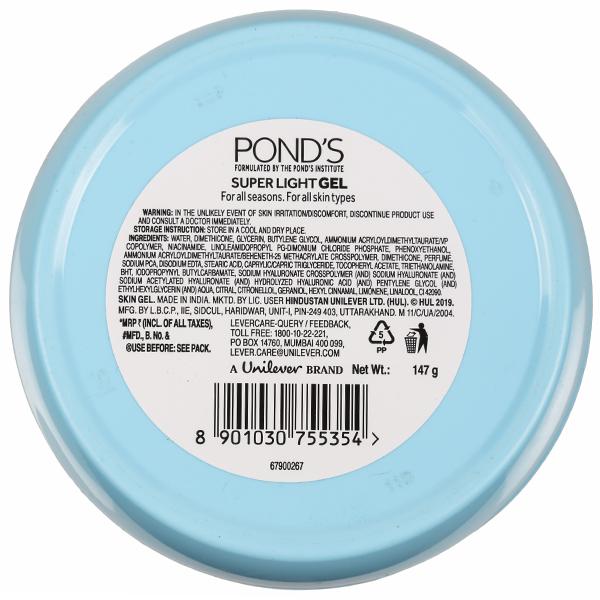 Looking for 24 hours of moisturization for your skin? Look no further! The all new Pond’s Super Light Gel - your go-to moisturizer for all seasons. Infused with the goodness of hyaluronic acid, vitamin E and glycerine, this super light moisturizer absorbs faster than regular creams and gives 24-hour hydration for a water-fresh glow! It helps restore the moisture balance to keep your skin soft and smooth. Its lightweight formula absorbs into the skin instantly without leaving any sticky feeling, making it ideal for all seasons, even in scorching summers. It's super lightweight formula spreads easily on skin making it easy to apply. Enjoy it all throughout the year!