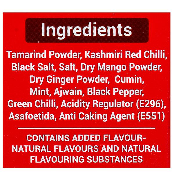 Tamarind Powder, Kashmiri Red Chilli, Black Salt, Salt, Dry Mango Powder, Dry Ginger Powder,