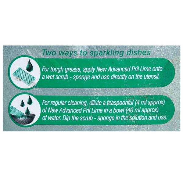 How to use - Take 1 teaspoon of pril gel. Mix it in 1 bowl of water. Dip the scrubber and squeeze to get powerful lather. Clean to get a sink full of sparkling vessels.