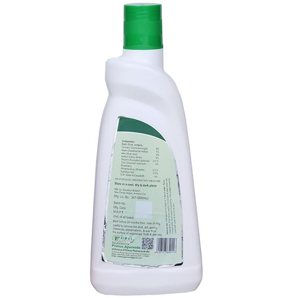 Direction Of Use - Dilute 10 ml of Primus Vegetable & Fruit Wash 500 ml in 1 liter of water. Soak vegetables and fruits in the solution for 3-5 minutes. Rub individual pieces thoroughly with hand dipped in the solution. Rinse in running water for 2-3 times for atleast 30 seconds.