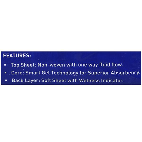 Product Information - Waterproof moisture barrier helps in keeping beds and other surfaces dry. Leakproof Technology - Netted channel inside for faster liquid distribution and absorption. Inside liner is soft and vented which is non-irritant to the skin. Top sheet is made of quilted material which is gentle on delicate skin. Quickly locks fluids away and helps eliminates odour.