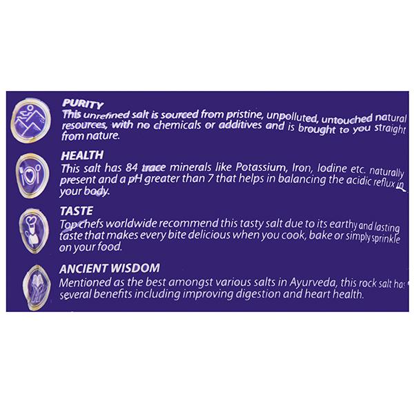 India's first "healthy salt" for daily use. 100% Natural, no chemicals, no additives, unrefined. Good for heart and digestion. 80+ Minerals naturally present including potassium, iodine, iron and calcium.