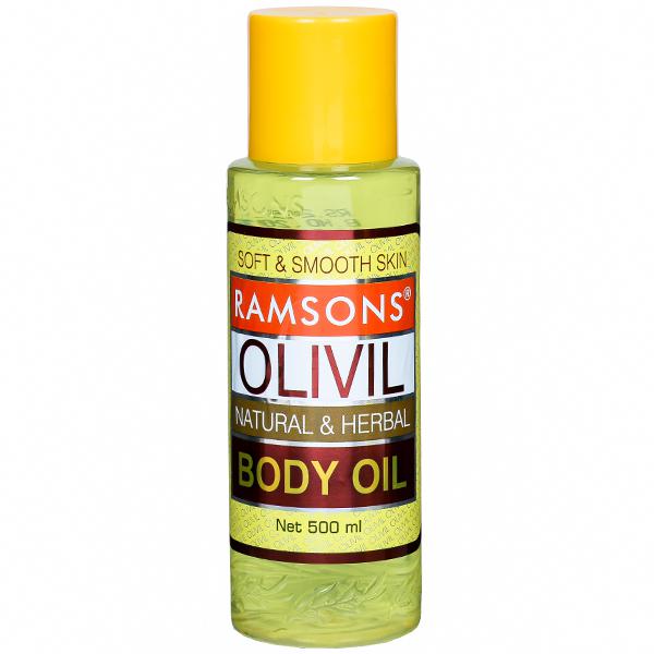 Product Information- Ramsons Olivil Natural & Herbal Body Oil for a soft, smooth, glowing and healthy skin, which is enhanced with olive oil. It has a light texture with mesmerizing aroma and nourishes your skin with ayurvedic elements. Absorbed by skin easily. Makes skin soft, smooth and radiant. Effective herbal body oil. Golden liquid of 500 ml ensures healthy skin. Prevents aging and wrinkling.