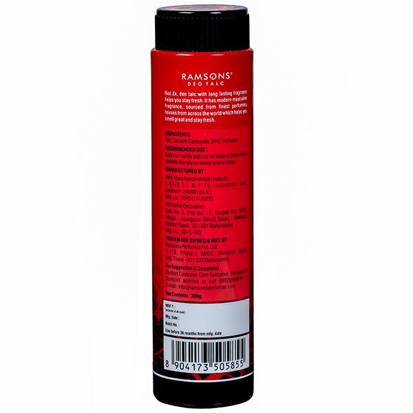 Fragrance of Ramsons Red Zx Deo Talc is packed with the goodness of both deodorant and talcum powder.