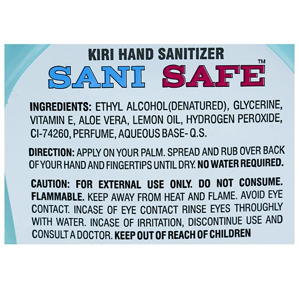 Keep your hands clean and germ free on the go with Sani Safe Hand Sanitizer. It is Rinse free & Non Sticky. It kills 99.99% germs without water leaving your hands soft.
