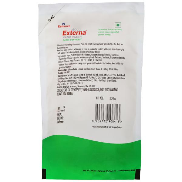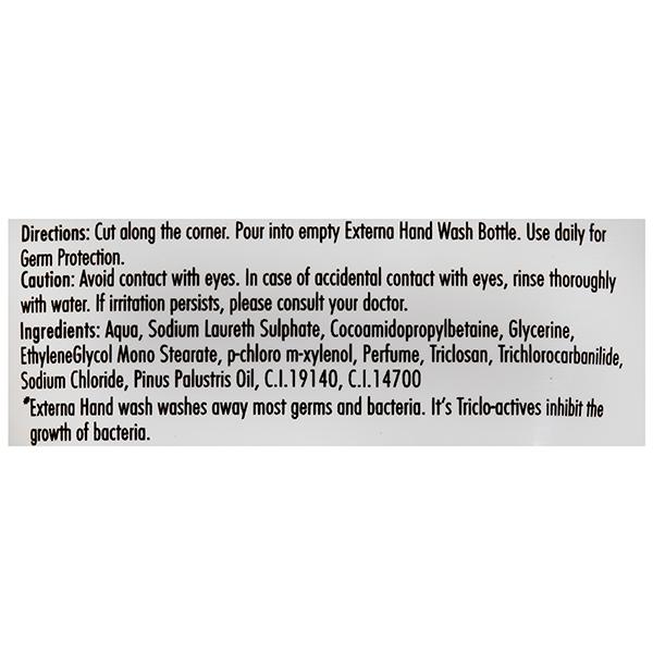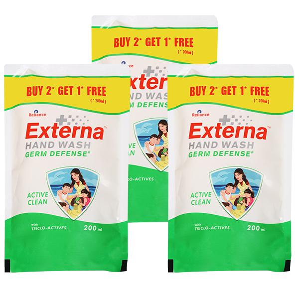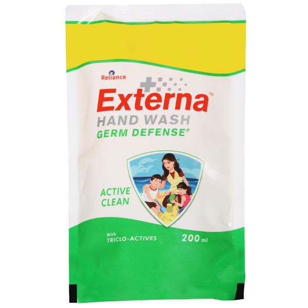 Reliance + Externa Active Clean Germ Defense Handwash- Power packed with antibacterial properties it gently and effectively cleanses by keeping germs at bay. This hand wash prevents the spread of germs, keeping the family safe from infection causing germs.