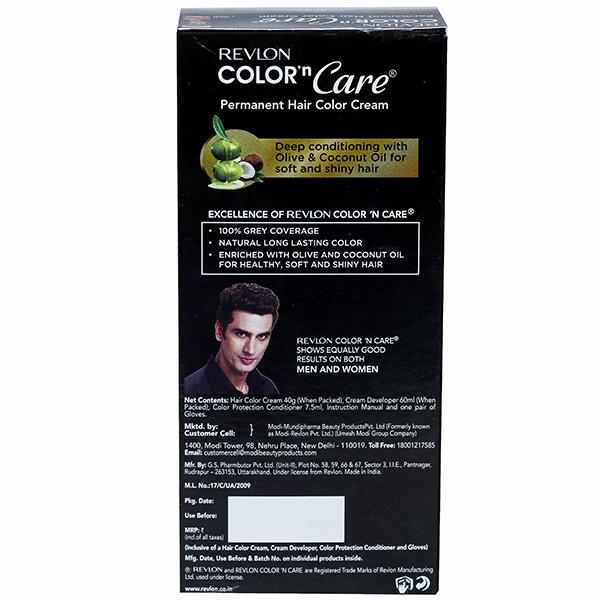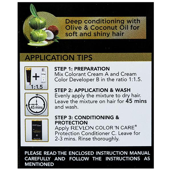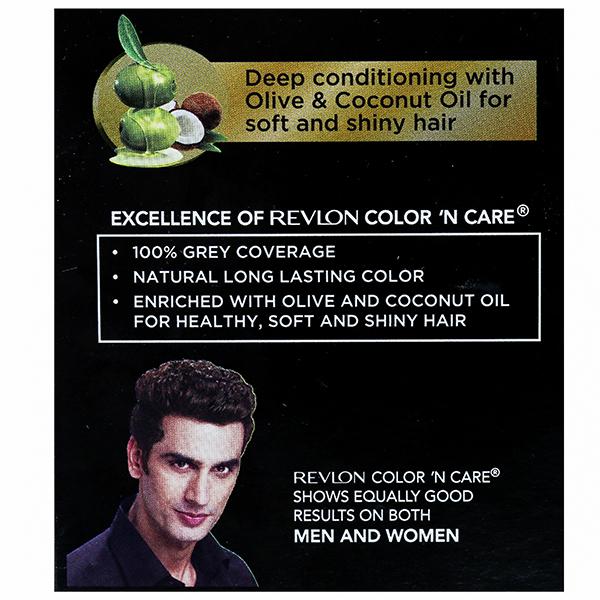 This permanent hair color has an easy, non-drip cream formula that gives you 100% grey coverage and long lasting colour. Its unique formula has coconut oil that conditions your hair from the roots, making soft and shiny and protects from getting dry and damaged. Revlon color and care is the trusted hair color brand from the world’s leading color and trend authority. Revlon color and care gives vibrant long lasting color. Revlon color and care is enriched with coconut and olive oil for healthy, soft and shiny hair