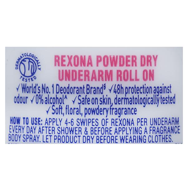 Apply 4-6 swipes of Rexona per underarm everyday after shower and before applying a fragrance body spray. Best regime to stay Odour free all day- Step 1- Bathe Step 2- Apply Rexona Roll On your underarms Step 3- Apply Fragrance or Deo Sprays on your clothes