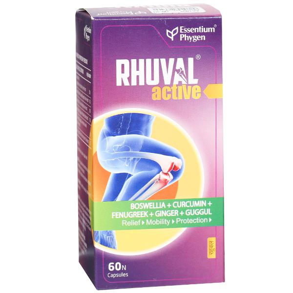 RHUVAL ACTIVE is a unique combination of well-known plant extracts for joint support viz. Boswellia, Curcumin, Fenugreek, Ginger and Guggul which provides relief from inflammation, pain and stiffness of joints and the associated tissue.