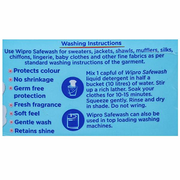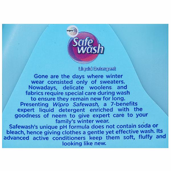 Product Information - Safewash Liquid Detergent keeps your cloths Germ-Free* and looking like new. Wipro Safewash Liquid Detergent gently washes woolens, delicates and fine fabrics which keeps them looking and feeling like new for long.