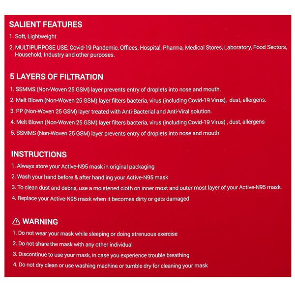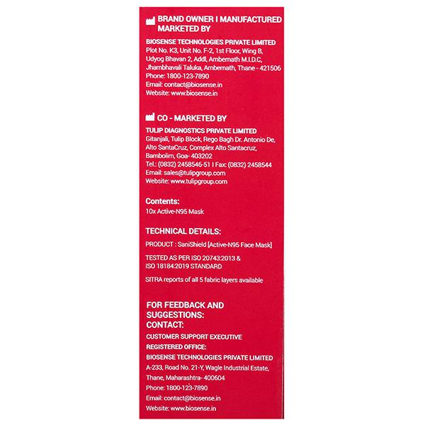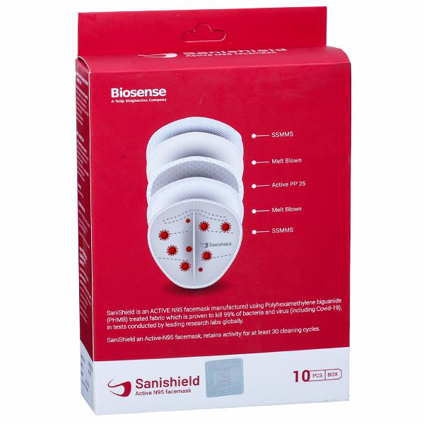 Product Information: SaniShield is an Active N-95 facemask manufactured using polyhexamethylene biguanide (PHMB) treated fabric, which is proven to kill 99% of bacteria and virus (including Covid-19), in tests conducted by leading labs globally.