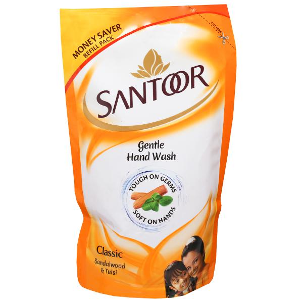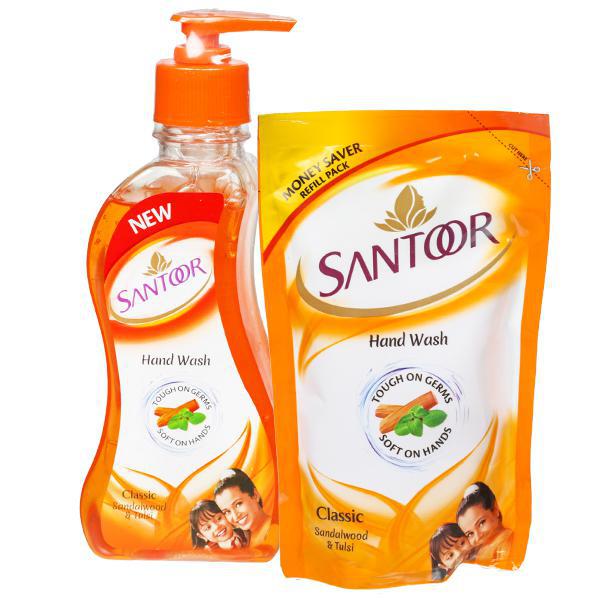 Santoor hand wash with a blend of natural ingredients and unique formulation that not only fights germs but also keeps the hands soft. Its natural fragrance makes it pleasant to use and it has unique dual benefit.