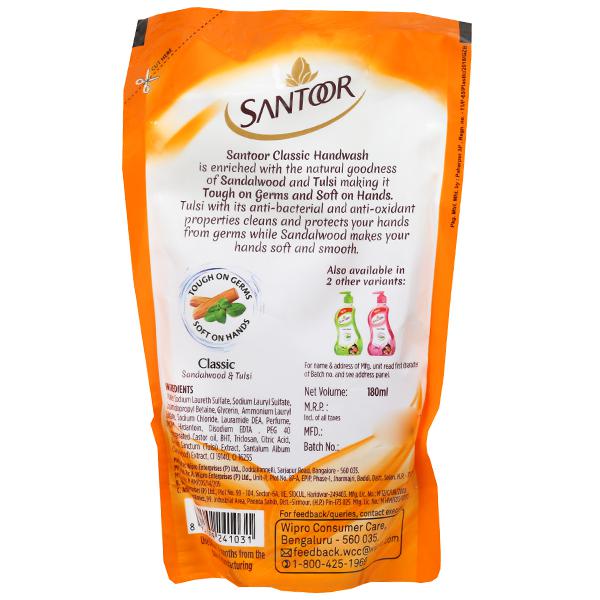 Santoor Classic Sandalwood & Tulsi Gentle Hand Wash (Free Santoor Handwash 180 ml) 215 ml