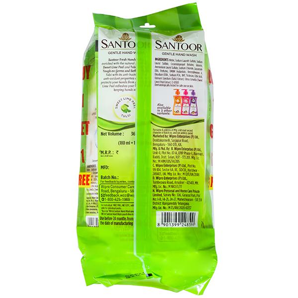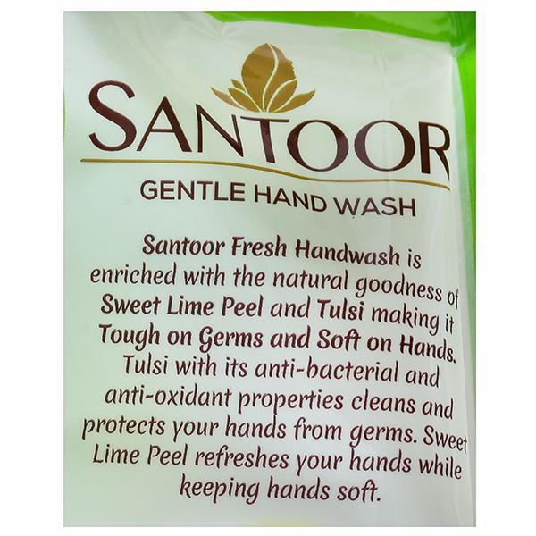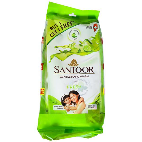 Santoor hand wash with a blend of natural ingredients and unique formulation that not only fights germs but also keeps the hands soft. Its natural fragrance makes it pleasant to use and it has unique dual benefit.