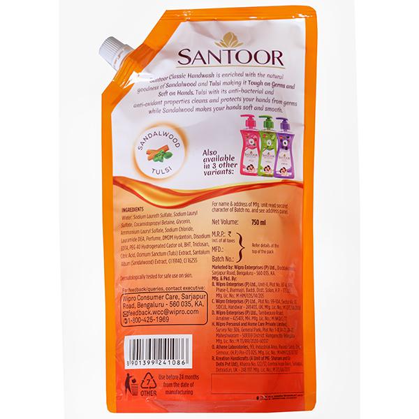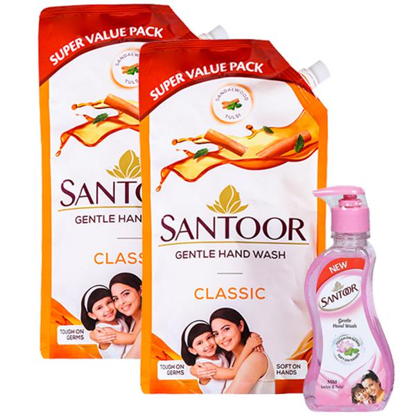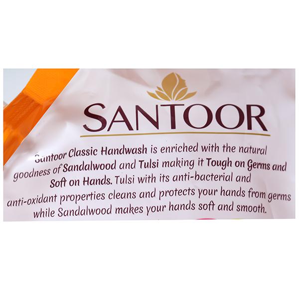 Santoor hand wash with a blend of natural ingredients and unique formulation that not only fights germs but also keeps the hands soft. Its natural fragrance makes it pleasant to use and it has unique dual benefit.