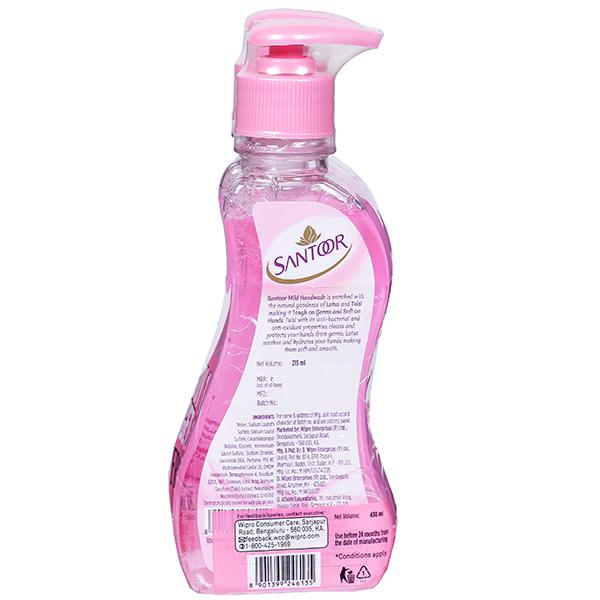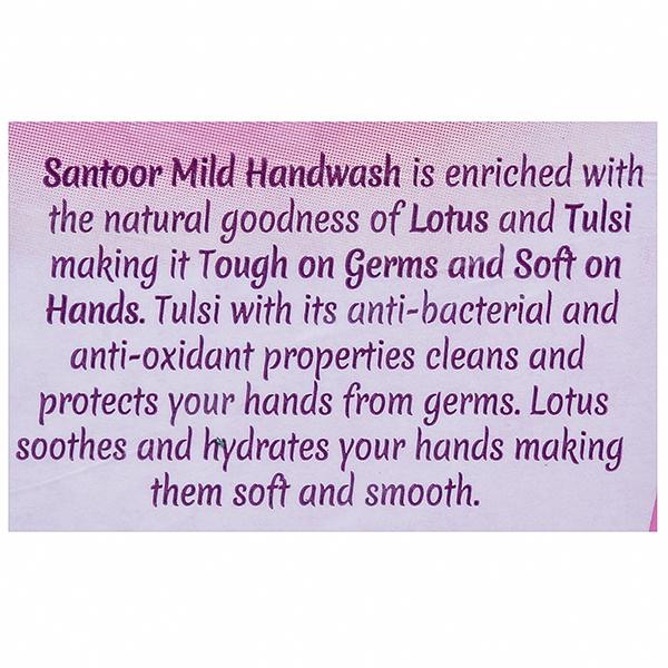 Santoor hand wash with a blend of natural ingredients and unique formulation that not only fights germs but also keeps the hands soft. Its natural fragrance makes it pleasant to use and it has unique dual benefit.
