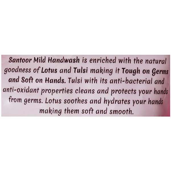 Santoor hand wash with a blend of natural ingredients and unique formulation that not only fights germs but also keeps the hands soft. Its natural fragrance makes it pleasant to use and it has unique dual benefit.