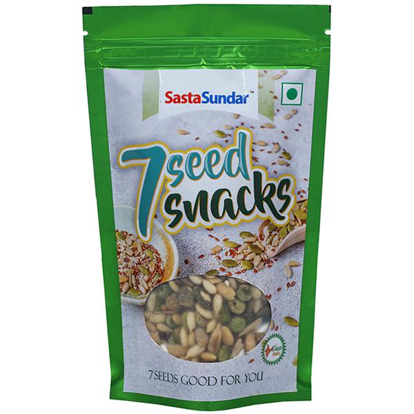 SastaSundar 7 Seed Snacks (100 g): Processed under International Hygiene Standards and a premium mix of 7 roasted seeds - Watermelon, Green Pumpkin, Flax, Sesame, Chia, Sunflower & Cucumber.