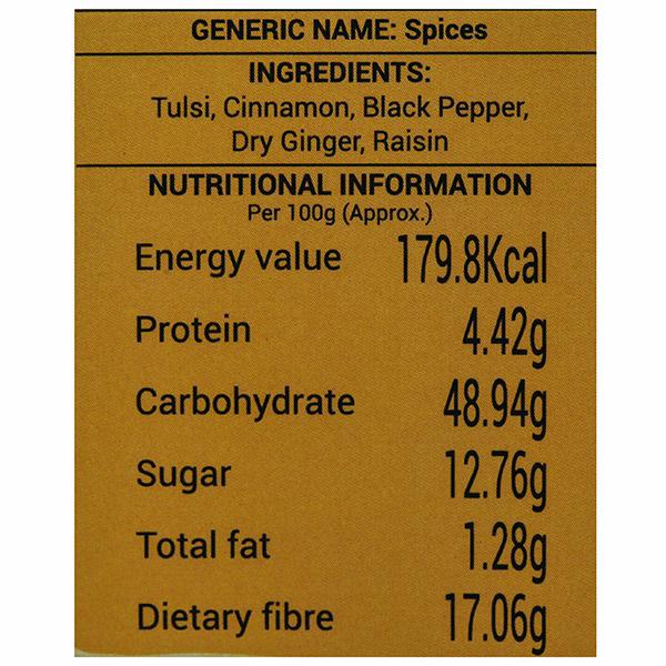 Ingredients- Tulsi, Cinnamon, Black Pepper, Dry Ginger, Raisin