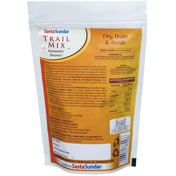 A trail mix is a snack mix composed of dry fruits and seeds, a handful of which is enough to enhance your energy levels. And with heart-healthy, antioxidant-rich ingredients like Black Raisins, Green Pumpkin Seeds, Cranberries, Almonds, Walnuts and Black Currants, this lightweight mix will not only satiate your snack cravings but also strengthen your immune system.